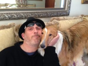 One of my Mummy’s human cousins came to visit, and Willow (the flirt) made him pose for a photo with her.. this is her with Waldi